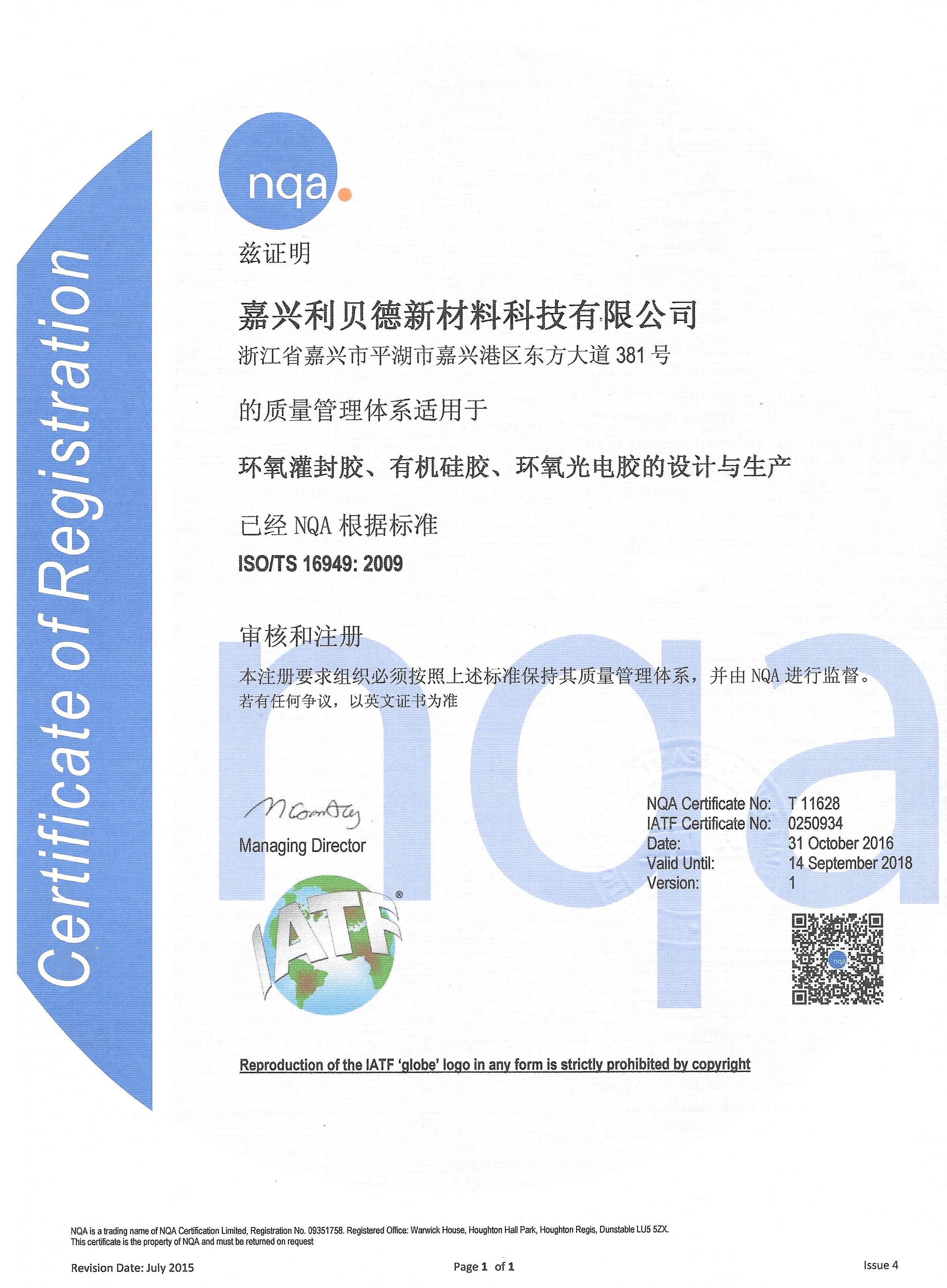 我司日前已通過TS16949審核并已取得正式證書,證書如下: